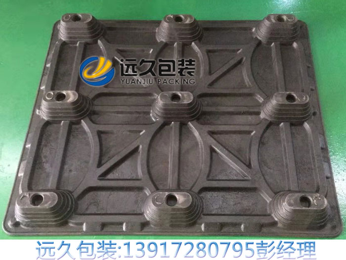 木塑模壓托盤的性能:防潮、防霉、防蛀、無釘、無刺、易清洗、出口衛生可免檢、含水率低于10%,不受天氣影響,經久耐用、可回收再生利用,環保,具有防水性能好,可長期浸泡水中,無膠合成(無甲醛),一次成型(無釘結構構,不會因為釘子露出把包裝物搞壞,200 度高溫融合,800 噸的高壓合成(出口免熏蒸),外形可塑性強(含有塑料成分),使用過程中不會掉粉。